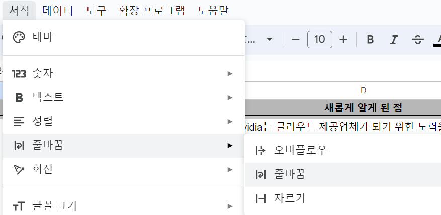 서식 - 줄바꿈 - 줄바꿈